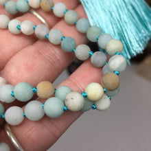 • Load image into Gallery viewer, Matte Black Gold Amazonite 108 6mm Beads Handmade with Light Blue Tassel #02
